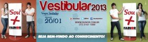Vestibular FAINOR 2013 acontece dia 20 de janeiro de 2012 e você pode escolher entre os cursos de graduação: Administração, Ciências Contábeis, Engenharia de Computação, Engenharia Elétrica, Engenharia de Produção, Enfermagem, Farmácia, Fisioterapia e Arquitetura e Urbanismo, Odontologia Vespertino, Design de Moda e Estética e Cosmética.