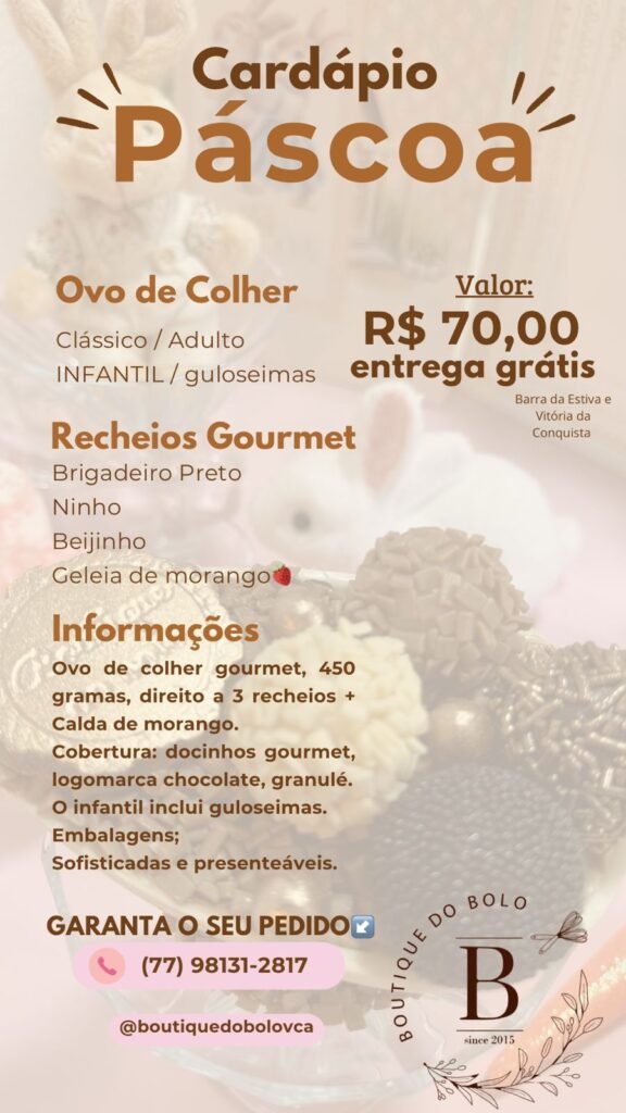 Será um prazer adoçar a sua Páscoa! 💝
