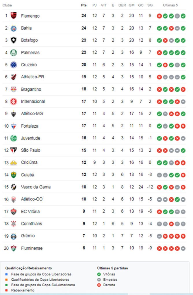 Após esse resultado, o Bahia chegou a 24 pontos, a mesma pontuação do líder Flamengo, mas fica na vice-liderança por uma diferença de dois gols de saldo. Já o Vasco permanece na 15ª posição, com 10 pontos, uma a mais do que o Vitória, time que abre a zona de rebaixamento do Brasileiro.