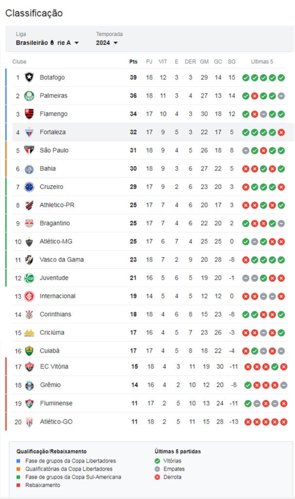 Brasileirão série A: Botafogo vence Inter e se mantém na liderança