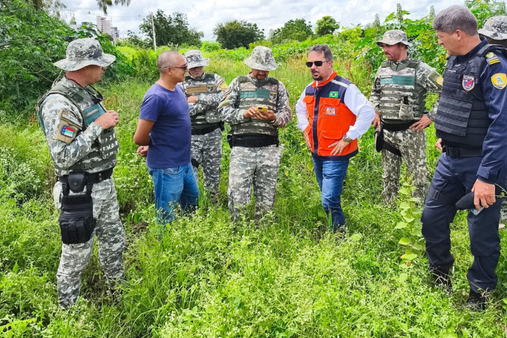 Pela manhã, as equipes atuaram na região do Orquidário Municipal Zilda Gusmão, realizando varreduras com auxílio de drones.