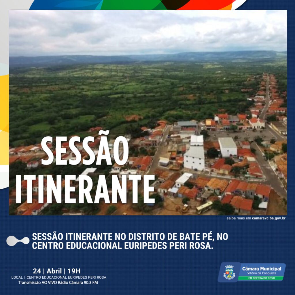 Nesta quarta-feira, 24, a Câmara Municipal de Vitória da Conquista realiza uma Sessão Itinerante no Distrito de Bate Pé às 19h.