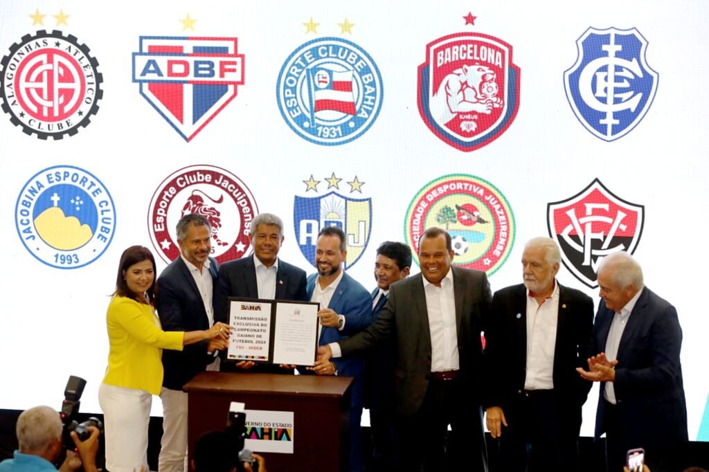 O documento assinado pelo governador autoriza a Secretaria da Educação do Estado da Bahia (SEC), por intermédio do Instituto de Radiodifusão Educativa da Bahia (Irdeb), a celebrar contrato com a Federação Baiana de Futebol (FBF), para cessão de direitos de transmissão ao vivo da Série A da edição 2024 do Baianão. “Nós queremos ampliar, chegar aos 417 municípios, queremos chegar ao interior, porque as imagens, às vezes, não conseguem chegar aos povoados. Eu quero registrar a minha alegria em poder chegar ao Campeonato Brasileiro com dois clubes da Bahia. Quero e desejo chegar com mais clubes, é essa a intenção”, afirmou Jerônimo, pontuando sobre a visibilidade que a transmissão da TVE traz para o futebol baiano.
