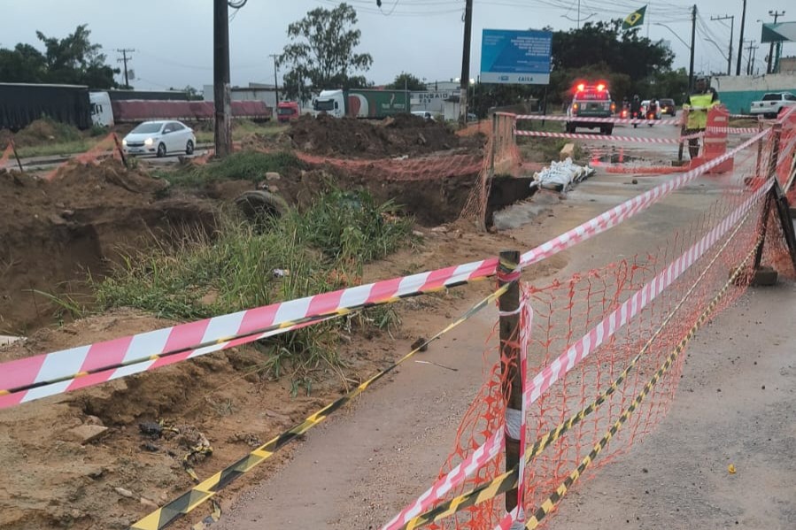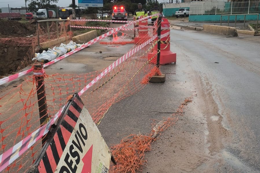 Engenheiros da Secretaria Municipal de Infraestrutura Urbana (Seinfra) e da Emurc realizaram vistorias in loco para conter danos estruturais críticos, especialmente na região da Avenida Brumado.