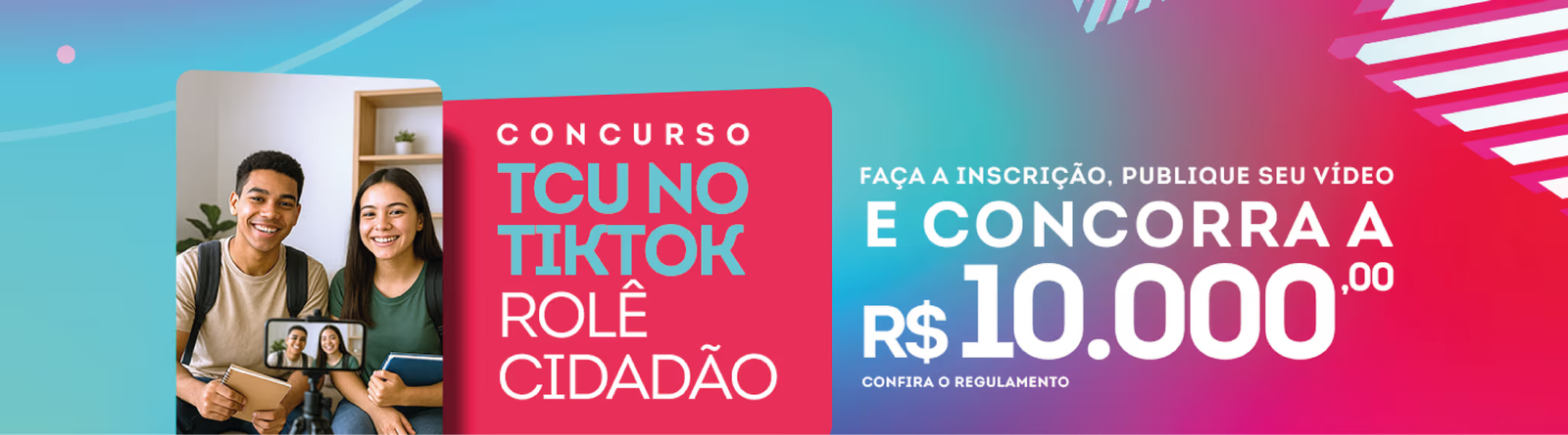 O Tribunal de Contas da União (TCU) abriu o concurso “Desafio TCU – Controle Social no TikTok”, também chamado “Concurso TCU no TikTok – Rolê Cidadão”, para estimular a criatividade de estudantes universitários e promover a participação e o fortalecimento do exercício da cidadania.