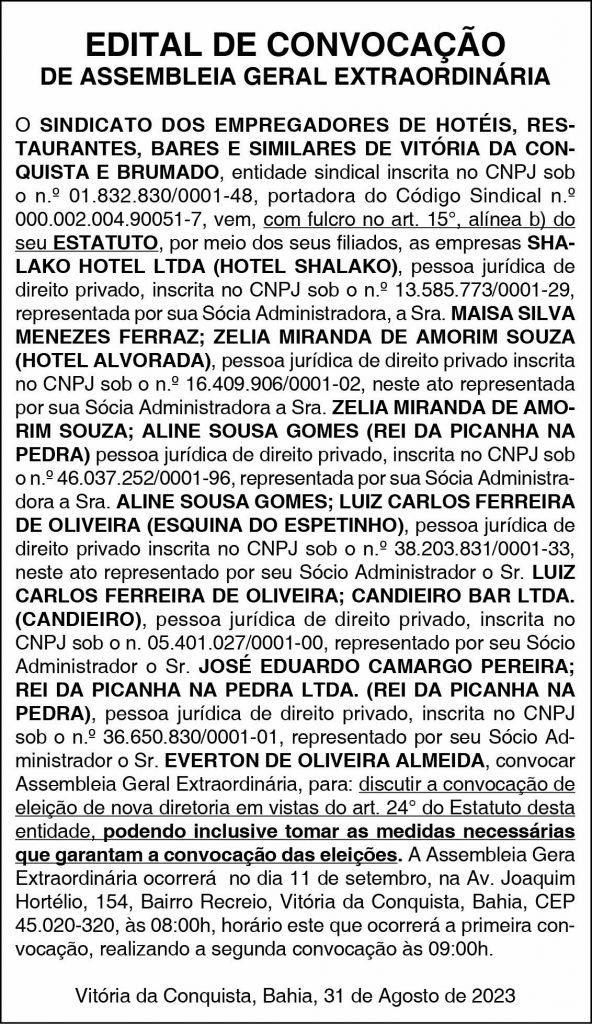 Convocação de Assembleia Geral Extraordinária publicada na versão impressa de 01 de setembro