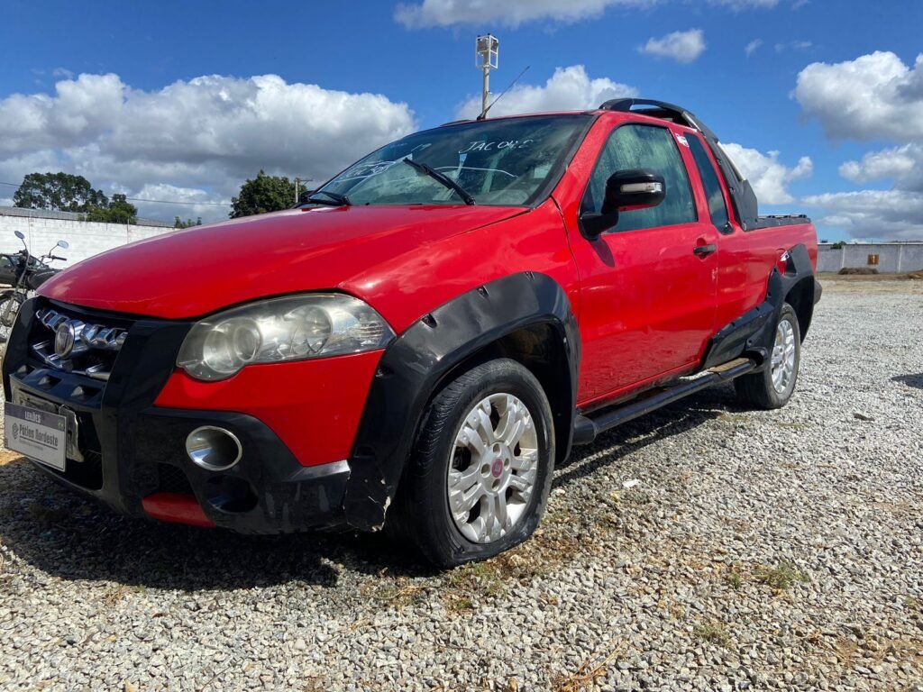 Dentre os veículos conservados está um Fiat Strada Vermelho de 2009 com lance inicial R$4.000,00, custodiado na cidade de Jacobina.