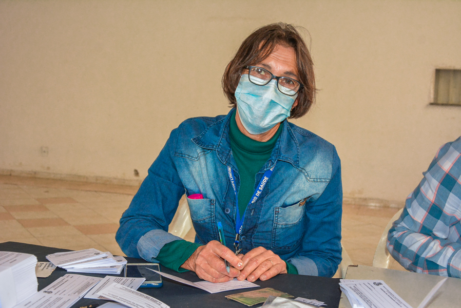 Há exatos 22 anos, a Agente Comunitária de Saúde Edite Maria de Souza (60), começava a sua vida no serviço público e, hoje, comemorou esse marco contribuindo com a equipe de registro da vacinação no ponto fixo da Paróquia Santa Luzia. “Eu exerço [o meu trabalho] com o maior prazer, porque eu gosto de ser Agente de Saúde, de lidar com o público na mesma localidade, nas mesmas ruas. É um imenso prazer estar trabalhando aqui hoje, principalmente, trazendo essa grande esperança para as pessoas, que é a vacina. Estou aqui sempre à disposição, qualquer dia que me chamarem para trabalhar”, conta.