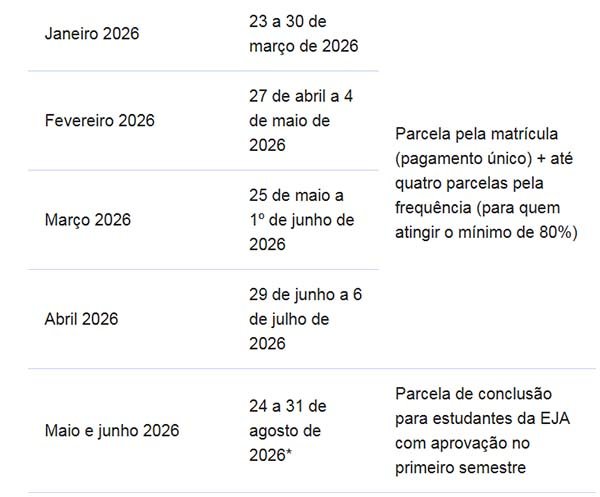 Porém, uma vez que o estudante é considerado elegível, essa condição permanece válida até o encerramento do calendário de 2026.