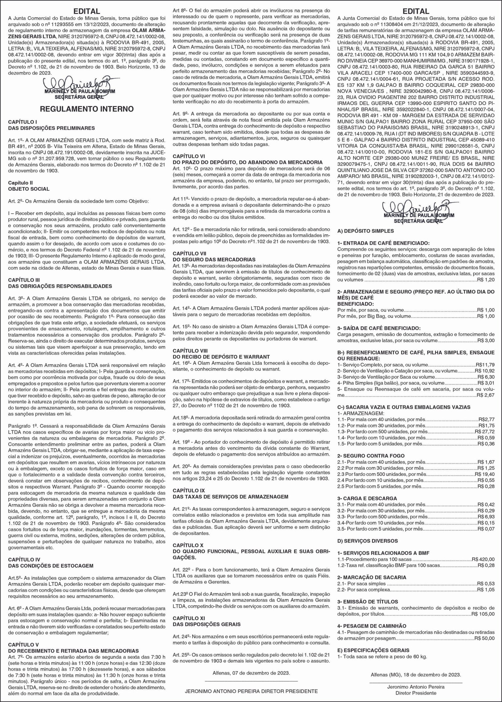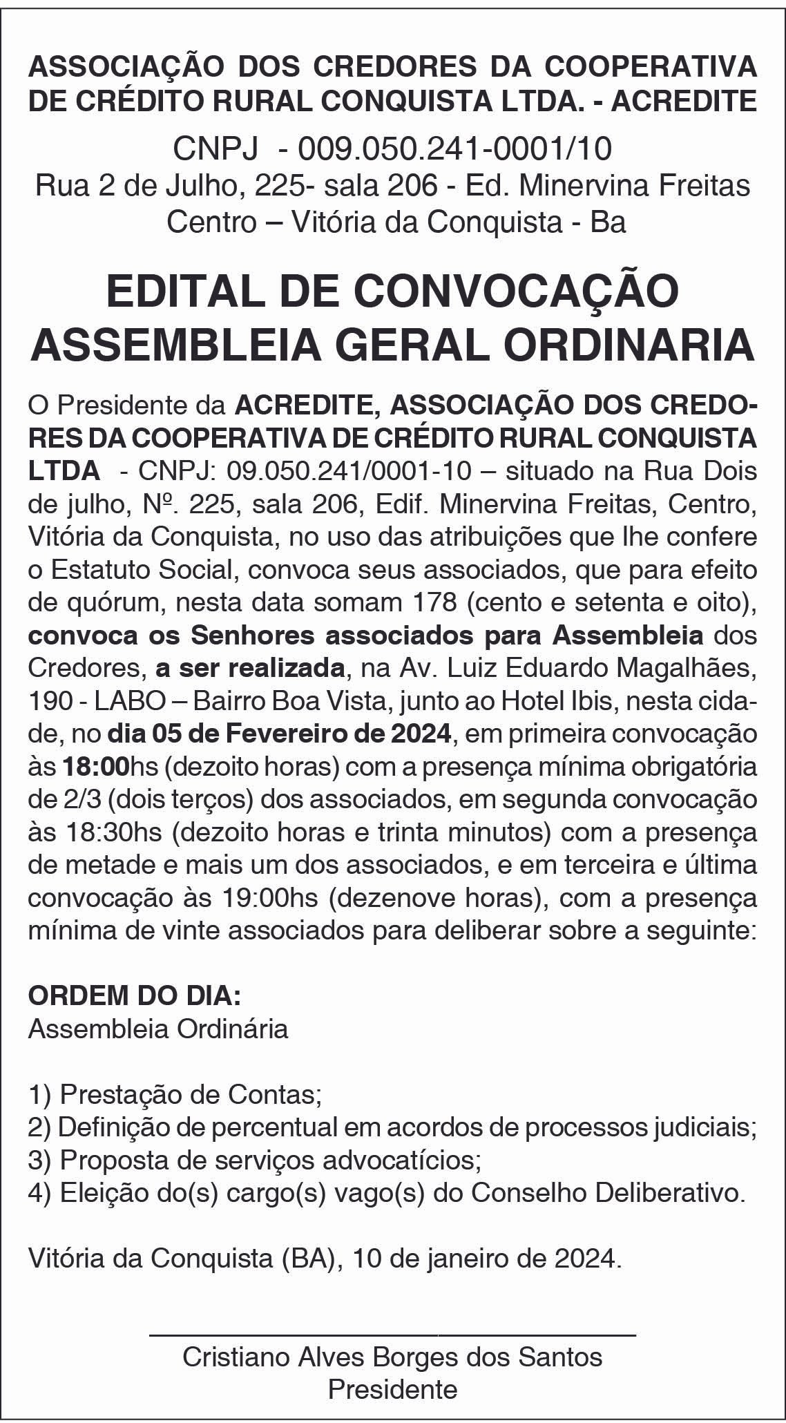 Editais publicados na edição impressa do jornal Diário do Sudoeste da Bahia do dia 10.01.2024
