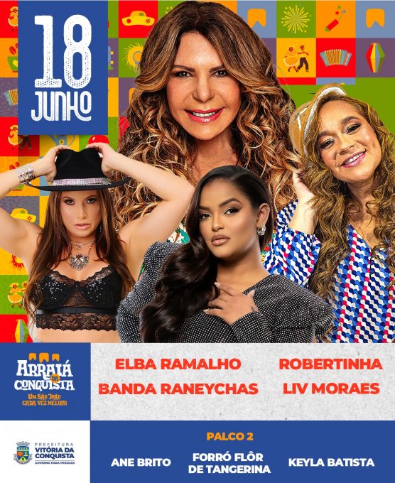 Nesta terça-feira, a partir das 18h, começa o arrasta-pé no Centro Cultural Glauber Rocha, tendo no palco principal somente vozes femininas. O quarteto é formado por Elba Ramalho, Liv Moraes, Robertinha e Keyla Batista.