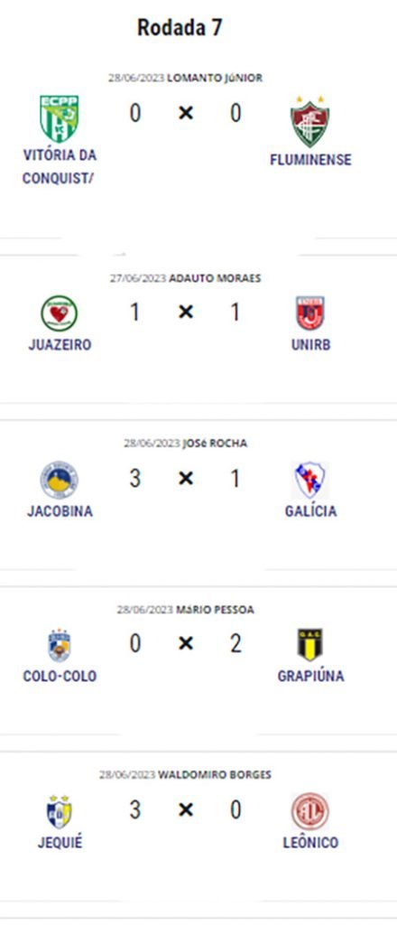 A oitava rodada da competição acontece no próximo domingo, 02 de julho: