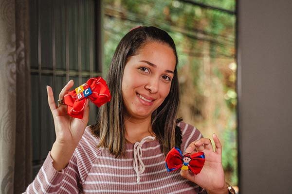Ela criou o Variedades da Vic, negócio de laços infantis para cabelos e artesanato que nasceu como uma renda extra, mas que hoje se tornou sua principal fonte de sustento.