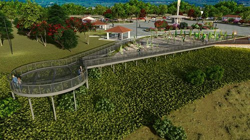 Serão feitas, ainda, a revitalização dos quiosques e a implantação de piso drenante, capaz de absorver a água da neblina e da chuva amena sem molhar os pés das pessoas. O projeto inclui execução de piso em saibro, paisagismo com plantio de árvores e forração de grama e vegetação, recapeamento asfáltico e colocação de piso tátil, passeio e rampas, colocação de bancos de concreto e uma nova iluminação em led.
