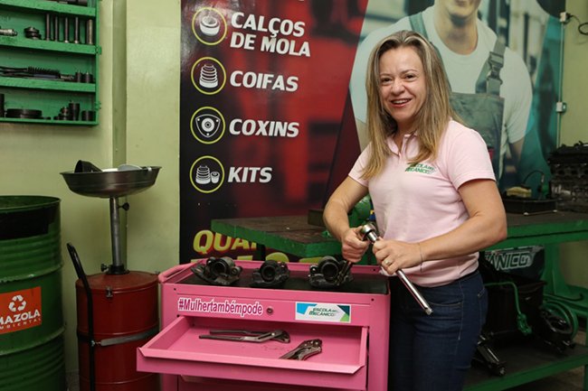 Quatro anos depois de começar a vender peças e pneus, Sandra ficou sabendo de uma vaga para ser chefe da oficina. “Eu queria muito aquela oportunidade, mas ouvi que era impossível, porque eu era mulher. Eu insisti e pedi para fazer uma capacitação porque, para assumir, eu precisava saber mais de mecânica, entender o funcionamento dos carros. Eles decidiram me dar uma chance e, quando eu cheguei ao centro de treinamento, o instrutor me disse que eu estava na sala errada, porque a sala de auxiliar administrativo era a do lado”, conta. Formada em Administração, Sandra conta que sempre se preocupou em estudar e aprender muito. “Estas atitudes machistas que eu sofria me faziam querer estudar mais e mais, aprender muito e ser boa no que eu fazia”, diz.