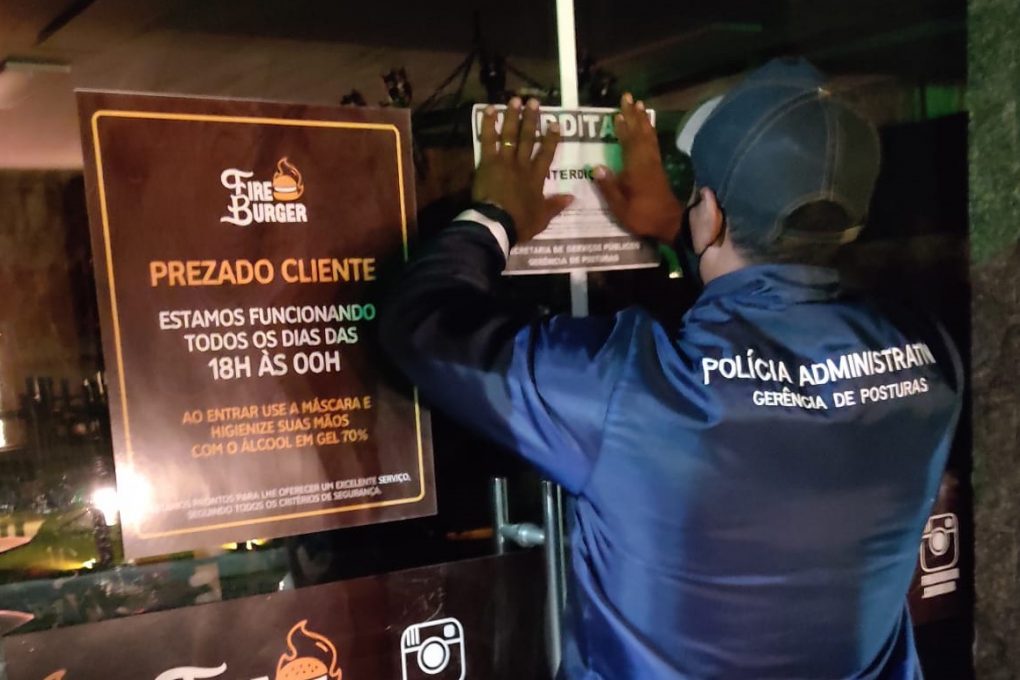 Entre quinta-feira (1º) e domingo (4), foram notificados 20 estabelecimentos que foram flagrados cometendo infrações aos decretos municipais, a exemplo de aglomerações, funcionamento fora do horário permitido, não obediência ao distanciamento e ocupação máxima de quatro pessoas mesas. Também ocorreu uma interdição por falta de alvará.