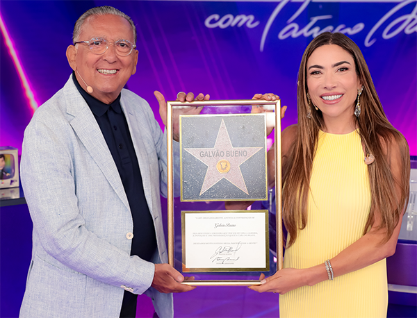 Ainda durante o “Jogo das 3 Pistas”, Galvão assina um contrato simbólico ao lado da imagem da famosa estrela com seu nome.