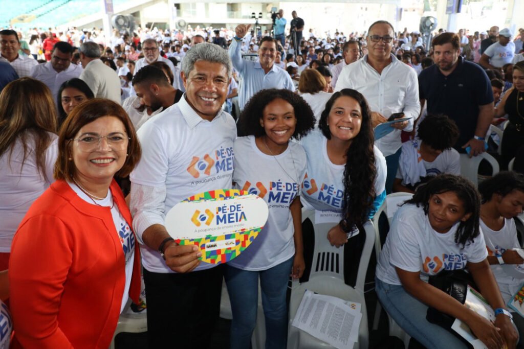 “O estudante que é contemplado desde o primeiro ano pode chegar ao final do último ano com R$9 mil na conta. Com esse investimento estamos quebrando a lógica, saindo do ambiente da escola e dizendo para o aluno: nós vamos dar conta de concurso, de equipamentos, de laboratórios e garantir escola em tempo integral e você pode sonhar, porque vamos te ajudar a garantir teu sonho”, declarou Jerônimo, destacando que cerca de R$1 bilhão serão destinados aos municípios baianos, para aplicação no Pé-de-Meia.