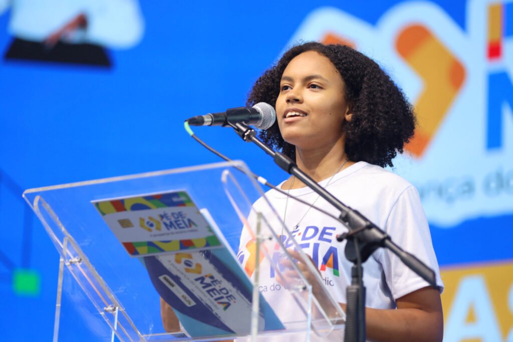 Iniciativa do Governo Federal, o programa é um incentivo financeiro-educacional, destinado a promover a permanência e a conclusão escolar de estudantes do ensino médio público e teve a adesão do Governo da Bahia formalizada nesta segunda-feira (11), durante solenidade na Arena Fonte Nova, em Salvador. “Eu senti uma imensa alegria em poder participar desse momento, porque essa é uma política pública que vai ajudar muitas famílias”, disse a estudante.