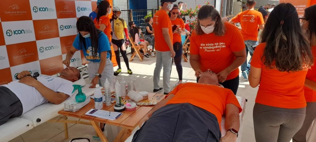 A ação aconteceu no Centro de Treinamento Praia Conquista em domingo de sol (com temperatura média de 26 graus) e contou com atividades interativas e momento de orientações médicas para a comunidade sobre os cuidados com a pele. Os oncologistas do Icon Dr. Klécius Aguiar e Dra. Marta Quixadá e a dermatologista Dra. Gabriela Botelho coordenaram o bate-papo. Também foram distribuídos materiais informativos, brindes e lanches naturais. A comunidade ainda pôde desfrutar de serviços de limpeza de pele, com aplicação correta de protetor solar, oferecido pelo Senac.