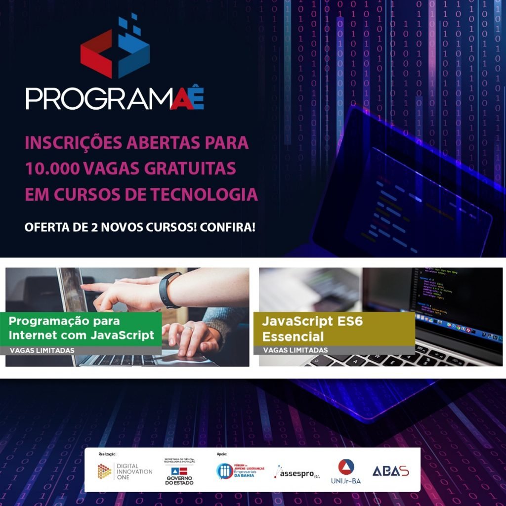Os cursos online de programação para internet com JavaScript e JavaScript ES6 Essencial estão disponíveis, gratuitamente,no site da Secretaria de Ciência, Tecnologia e Inovação (Secti), a partir desta segunda-feira (9).