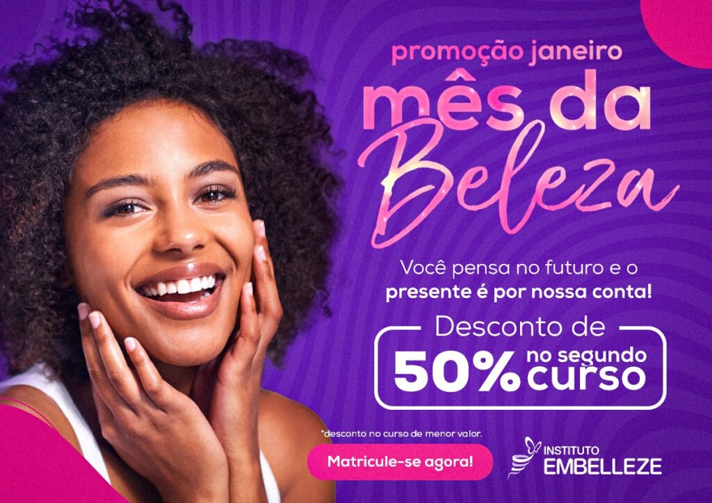 Instituto Embelleze promove Mês da Beleza com promoção exclusiva em cursos e matrícula.
