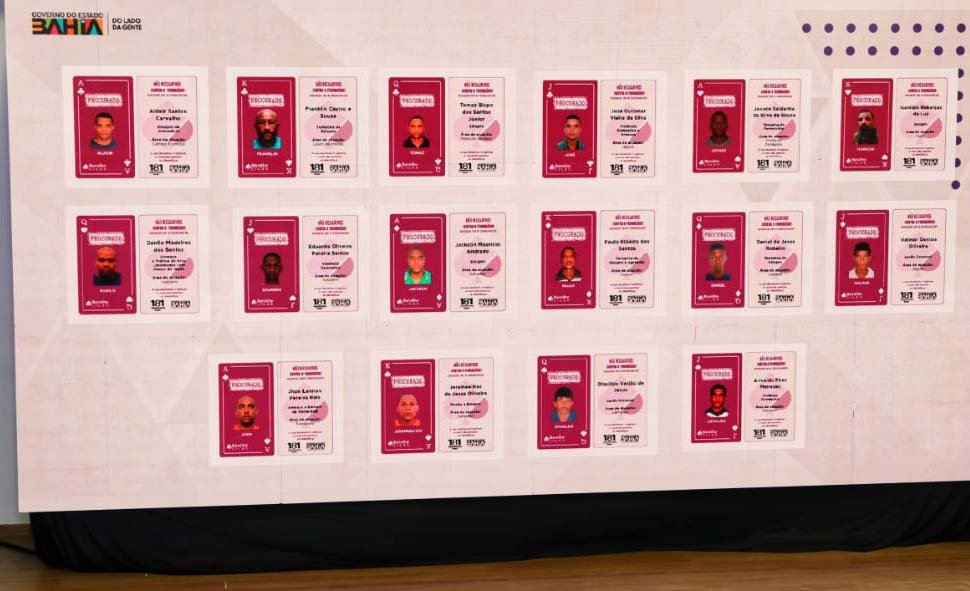 Batizado de Baralho Lilás, o Estado lançou, nesta sexta-feira (12), em Salvador, um novo baralho do crime da Segurança Pública da Bahia (SSP), em parceria com a Secretaria de Políticas para as Mulheres (SPM), voltado à identificação e captura de foragidos envolvidos em feminicídios, estupros, violências domésticas e outras agressões.