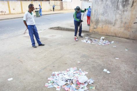 A equipe também trabalha no recolhimento do lixo deixado pelas pessoas que foram às ruas comemorar a vitória de candidatos. Segundo o secretário municipal de Serviços Públicos, Kairan Rocha, ainda não é possível mensurar a quantidade de material recolhido, mas os pontos com maior sujeira são os locais onde o número de eleitores para votar foi maior, a exemplo das proximidades dos colégios Abdias Menezes, Centro Integrado de Educação Navarro de Brito, Instituto Federal de Educação, Ciência e Tecnologia da Bahia (Ifba), e também do Instituto de Educação Euclides Dantas (Escola Normal).