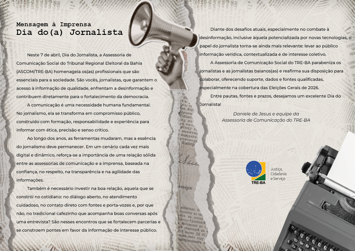 Mensagem à Imprensa | Dia do (a) Jornalista