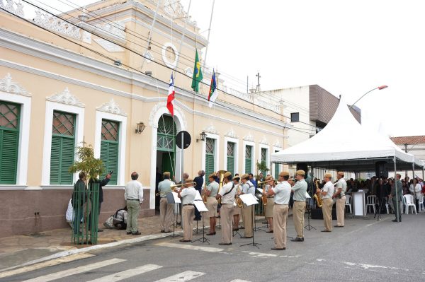 A cerimônia teve início com o hasteamento das bandeiras ao som dos hinos Nacional Brasileiro e à Vitória da Conquista, executados pela Banda de Música Maestro Valter de Santa Rosa do 9º Batalhão Escola de Ensino, Instrução e Capacitação da Polícia Militar. Participaram do ato, além do prefeito Herzem Gusmão, o presidente da Câmara Municipal, Hermínio Oliveira, e a vice-prefeita e secretária de Desenvolvimento Social, Irma Lemos.