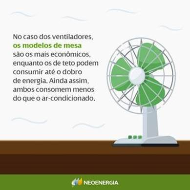 No verão, a Neoenergia Coelba reforça a importância de manter janelas e cortinas abertas para utilizar a iluminação natural. Quando precisar usar lâmpadas, escolher as de LED, que são cerca de 40% mais econômicas. Utilizar cores claras nas paredes e apagar as lâmpadas dos cômodos desocupados, com exceção daquelas que contribuem com a segurança, são outras dicas.