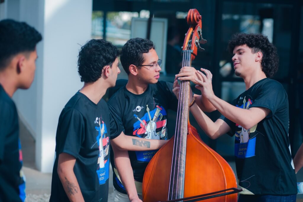 Criado em 2007, o NEOJIBA (Núcleos Estaduais de Orquestras Juvenis e Infantis da Bahia) promove o desenvolvimento e a integração social prioritariamente de crianças, adolescentes e jovens em situações de vulnerabilidade, por meio do ensino e da prática musical coletiva.