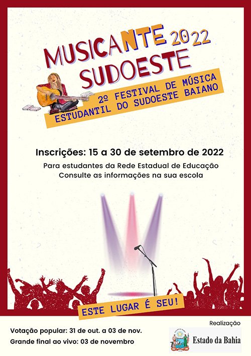 O Musicante é um festival de canção estudantil, promovido pelo Núcleo Territorial de Educação (NTE20) para os estudantes da Rede Estadual de Educação do Território Sudoeste Baiano.