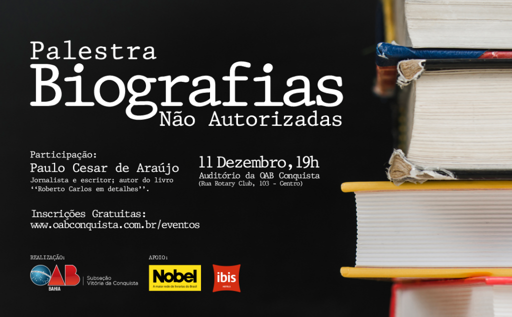 O jornalista e historiador, Paulo Cesar de Araújo, estará em Vitória da Conquista na próxima quarta-feira (11), para falar sobre biografias não autorizadas. O evento gratuito é promovido pela Ordem dos Advogados do Brasil Subseção Vitória da Conquista.