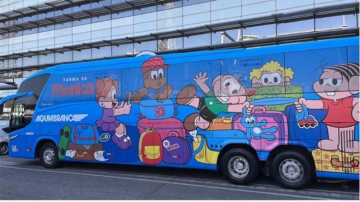 Na realidade o ônibus Temático trata-se de uma grande GiBiblioteca interante, com 42 lugares e diversas atividades para a criançada, com estampas dos personagens infantis.