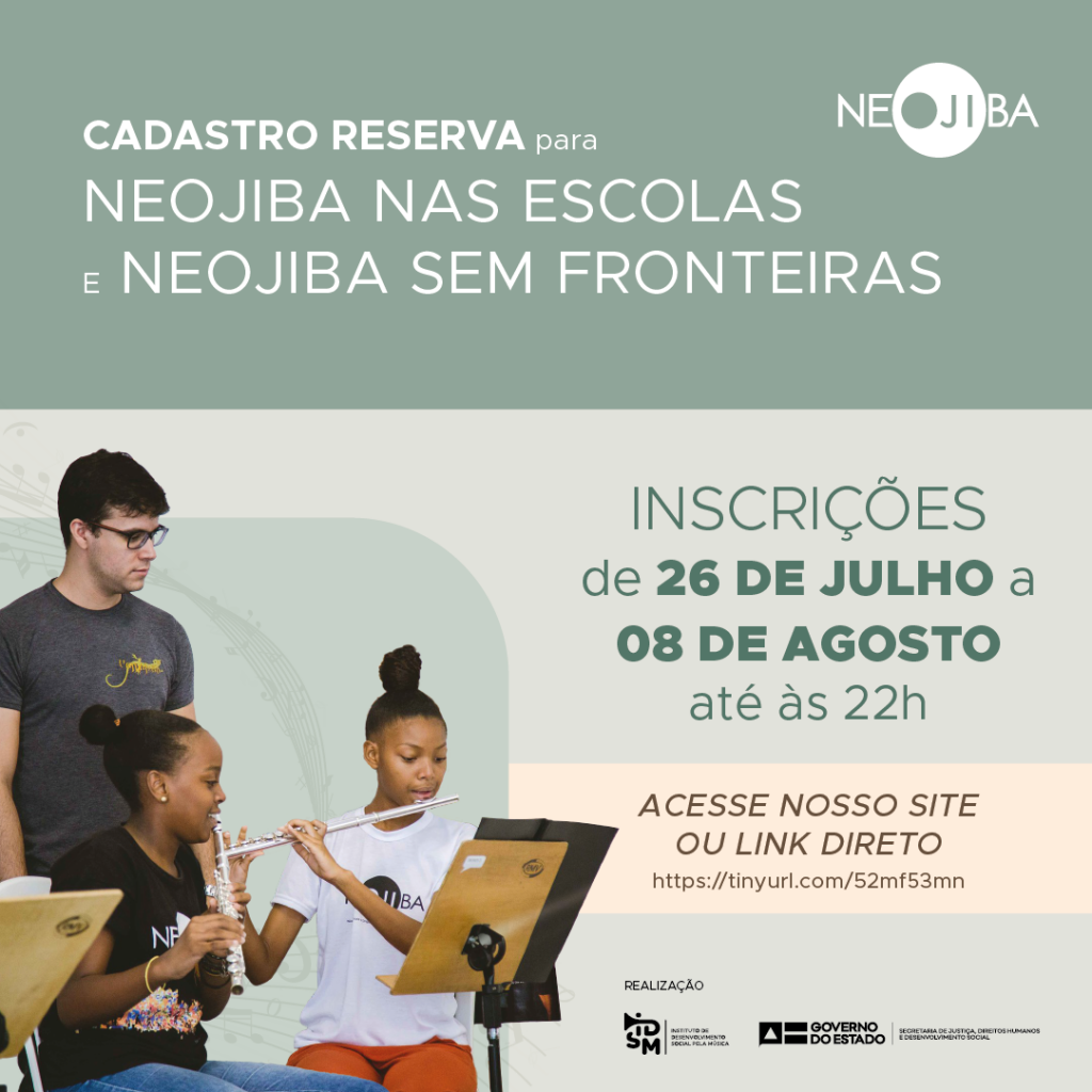 O NEOJIBA está com inscrições abertas, até o próximo domingo, 8, para o processo seletivo que visa a formação de um cadastro reserva de instrutores musicais para os projetos NEOJIBA Sem Fronteiras e NEOJIBA nas Escolas, voltados para crianças, jovens e adolescentes de toda a Bahia.