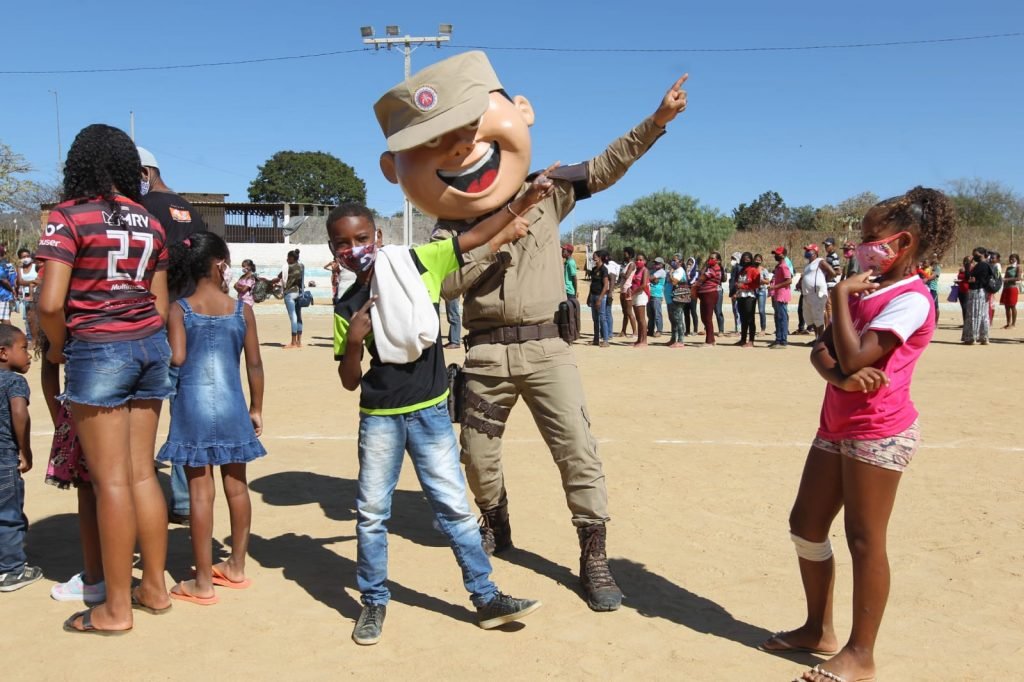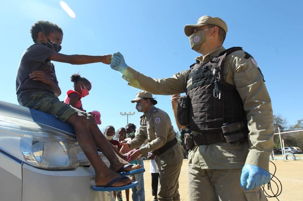 Na ação ‘Amiguinhos da PM’, seis crianças de famílias vulneráveis, nascidas durante a pandemia do novo coronavírus, e assistidas desde a gestação, ganharam uma festa de aniversário para celebrar o primeiro aninho de vida. No evento realizado na sede do Comando de Policiamento, teve bolo, doces, decoração temática produzida por uma empresa parceira da unidade, pula-pula, carrinhos, e presentes para os aniversariantes. O cabo PM Pessoa foi o responsável por animar as crianças tocando violão e cantando músicas infantis. A mamãe Andréia Souza Santos agradeceu. “A polícia deu todo o enxoval e apoio durante o meu parto, e continua atendendo as necessidades do meu bebê”.