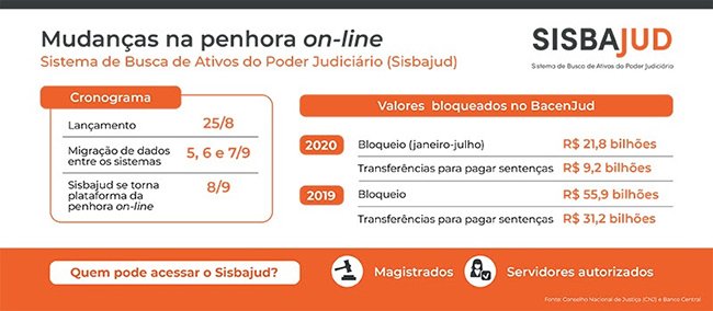 A importância da plataforma eletrônica de bloqueio é dada pelos valores movimentados. Em 2019, foram bloqueados quase R$ 56 bilhões, sendo cerca de R$ 30 bilhões convertidos em depósitos judiciais. Este ano, até julho, e em meio à pandemia da Covid-19, os bloqueios somaram R$ 21,8 bilhões, sendo R$ 9,2 bilhões transformados em depósitos judiciais para o pagamento de dívidas reconhecidas pela justiça.