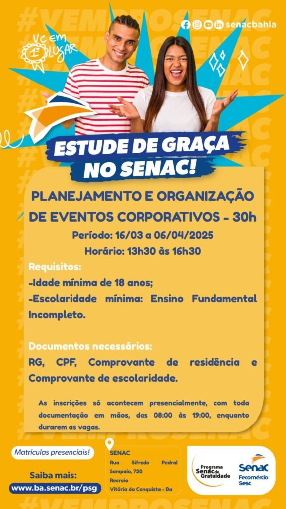 Planejamento e organização de eventos corporativos: Curso gratuito Senac