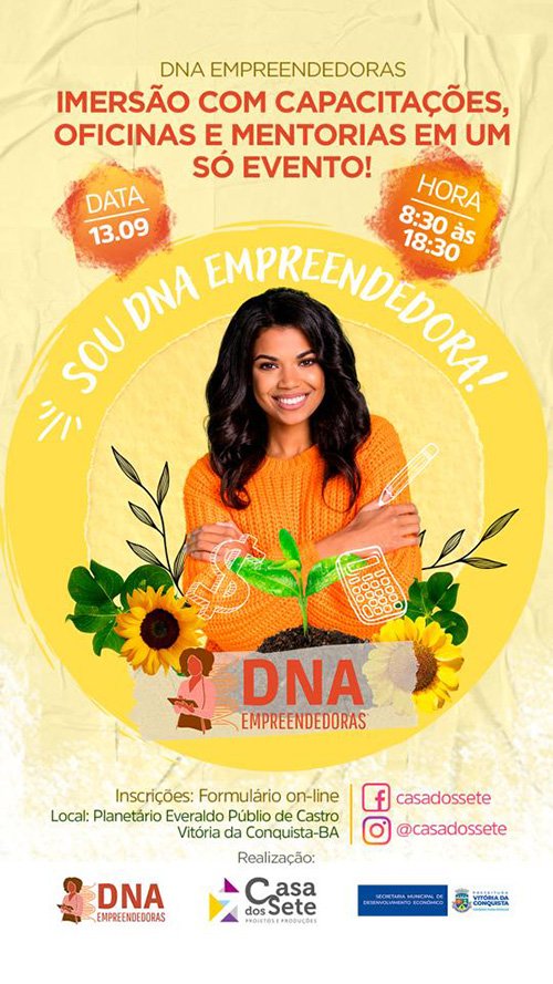 Estão abertas as inscrições para uma imersão sobre empreendedorismo feminino promovida pela Prefeitura de Vitória da Conquista, por meio da Secretaria Municipal de Desenvolvimento Econômico (SMDE), em parceria com o Centro Poeta – Casa dos Sete.