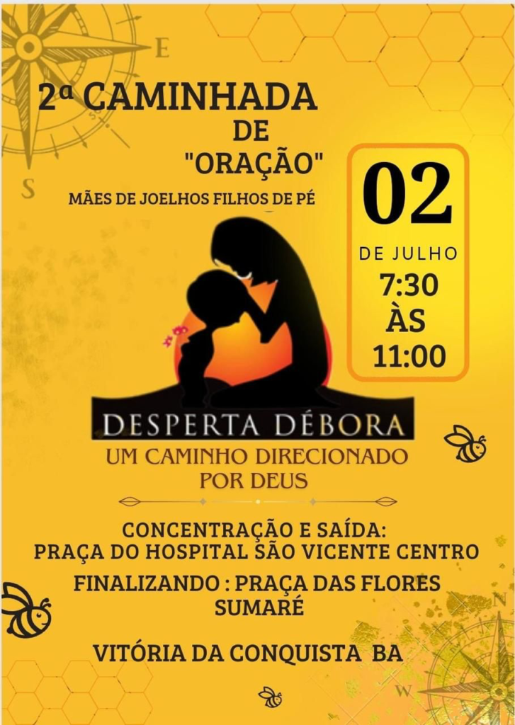O Projeto Desperta Débora, mães de joelhos filhos em pé, realiza a segunda caminhada de oração, desta vez com o tema “Um caminho direcionado por Deus”.