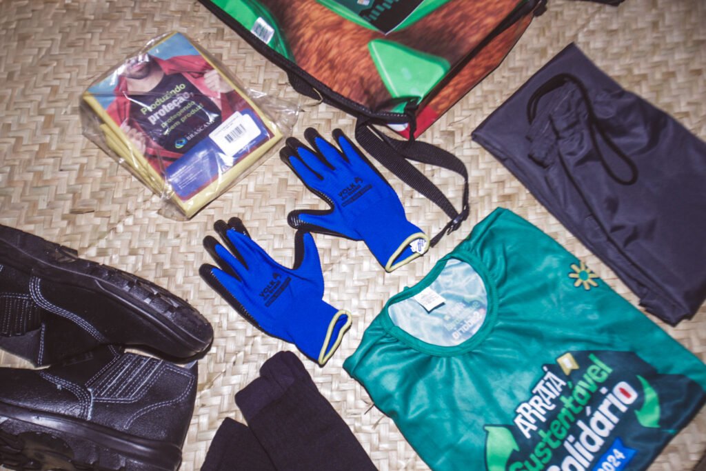 No Parque de Exposições, as cooperativas se integram para beneficiar catadores autônomos e cooperados que recebem Equipamentos de Proteção individual (EPIs) como botas, luvas e fardamento.