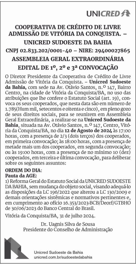 Publicações de editais na edição impressa desta quarta-feira, 31 de julho de 2024