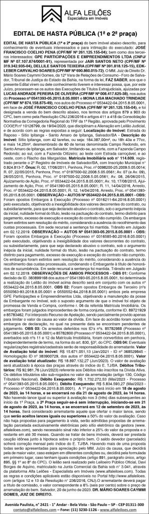 Publicidade legal: editais de convocação de assembleia veiculados na versão impressa 11 de agosto de 2023 Bahia, Destaques, NoticiasA versão impressa tem as publicações dos seguintes editais. Confira aqui:Compartilhe: Clique para imprimir(abre em nova janela) Imprimir Clique para compartilhar no Facebook(abre em nova janela) Facebook Clique para compartilhar no Reddit(abre em nova janela) Reddit Clique para compartilhar no WhatsApp(abre em nova janela) WhatsApp Clique para compartilhar no X(abre em nova janela) 18+ Clique para enviar um link por e-mail para um amigo(abre em nova janela) E-mail Clique para compartilhar no Telegram(abre em nova janela) Telegram Relacionado DestaqueDestaque-HomeDestaques