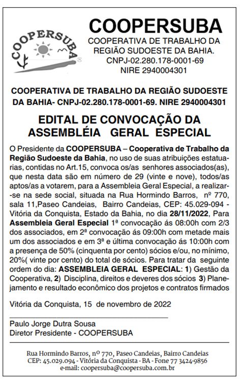 Publicidade legal: publicação de editais, convocações, avisos, licitações, atos e fatos
