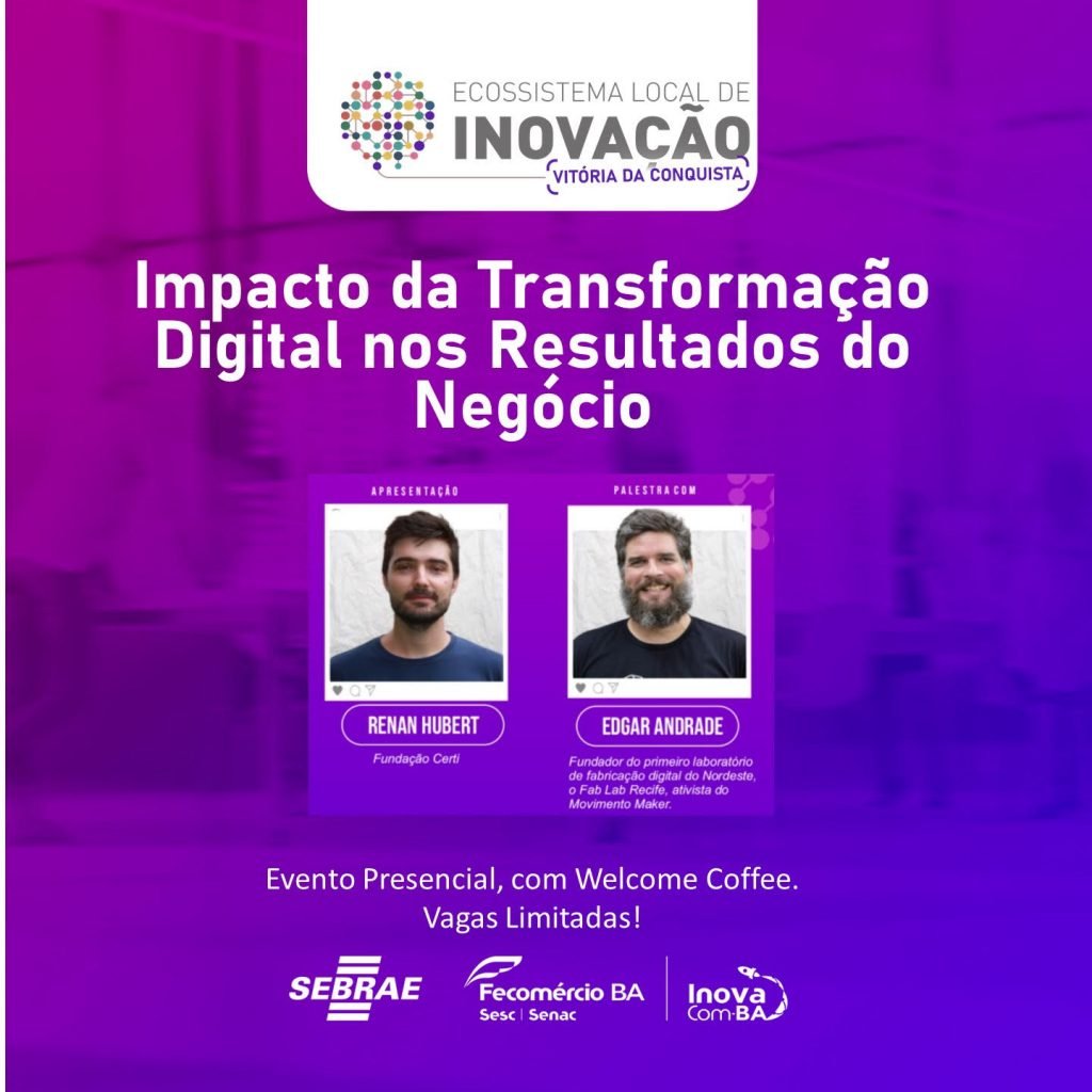 Com o objetivo de sensibilizar toda a sociedade a despertar para uma cidade mais inovadora, o Sebrae/BA e a FECOMÉRCIO BA também farão neste evento a entrega do Plano de Intervenção do Ecossistema de Inovação de Vitória da Conquista.