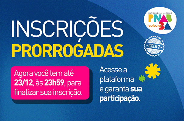 A Secretaria de Cultura do Estado da Bahia (Secult-BA) prorrogou o prazo de inscrições dos editais do Ciclo 2 da Política Nacional Aldir Blanc de Fomento à Cultura (PNAB).