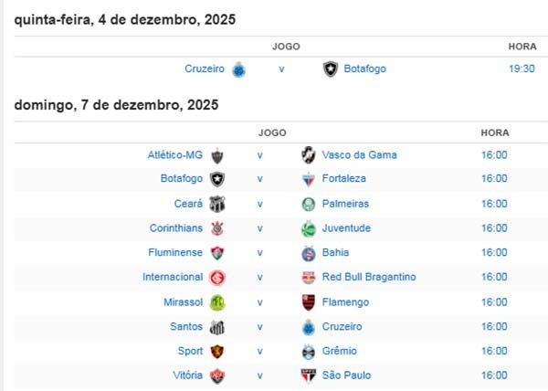 Próximos jogos das últimas rodadas do campeonato: