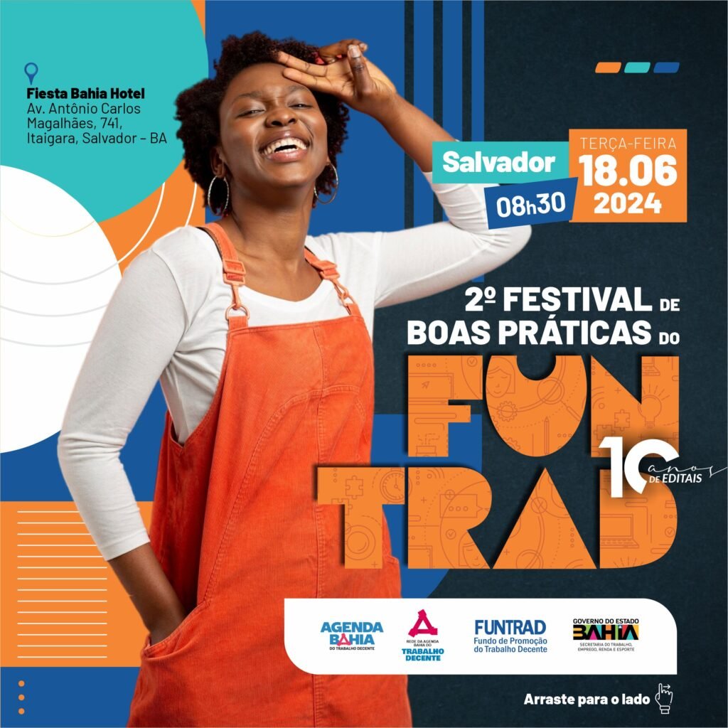 O Governo da Bahia, por meio da Secretaria do Trabalho, Emprego, Renda e Esporte (Setre), realiza o II Festival de Boas Práticas do Funtrad – Fundo de Promoção do Trabalho Decente, com programação diversificada que inclui mostra imersiva em 3D, lançamento de catálogo comemorativo aos 10 anos de editais, oficinas e conferência virtual com o professor da Unicamp, José Dari Krein, doutor em Economia Social e do Trabalho.