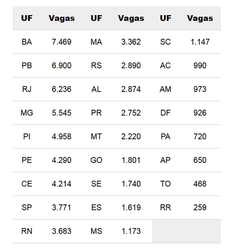 Confira as vagas de licenciaturas disponíveis no Sisu 2026, por unidade da Federação (UF):
